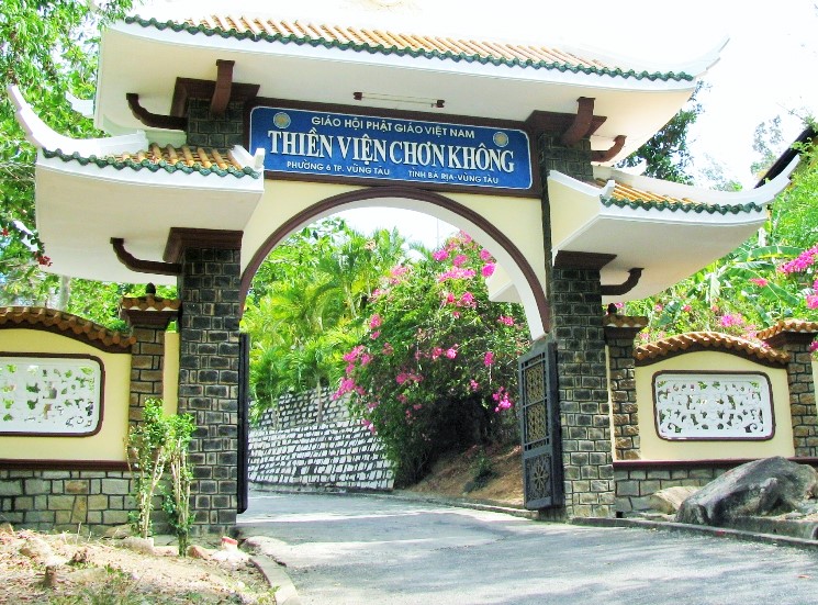 Tiếp tục đến tham quan Thiền Viện Chơn Không tọa lạc trên Hòn Sụp - Núi Lớn (Theo con đường Tiêu Dao lên dốc đồi Tự Tại , ngọn gió biển thổi nhẹ nhẹ quý phật tử sẽ cảm thấy lòng mình êm ái, nhẹ nhàng khi hành lễ Phật trước chánh điện mà xa xa là đại dương ngút ngàn xanh thẳm).